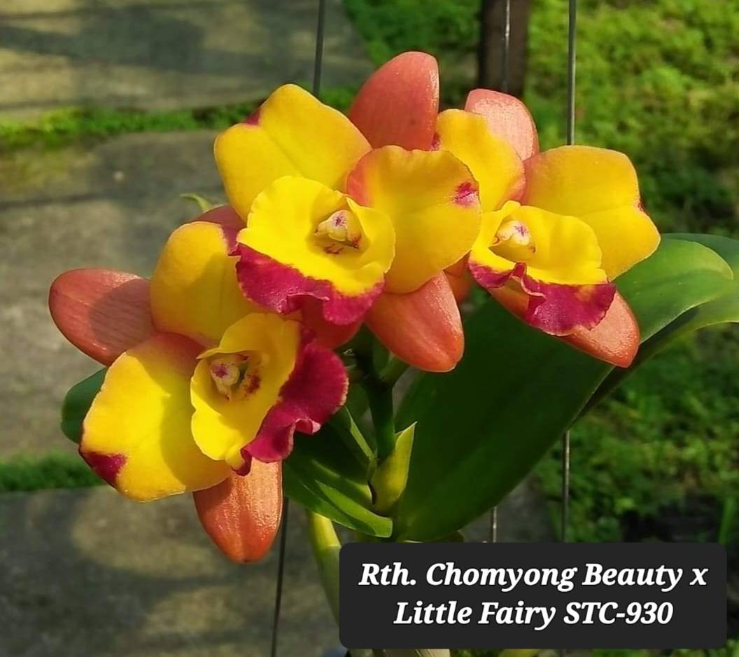 New release compact Cattleya with a bright yellow flowers and a delicate splash in the petals.
